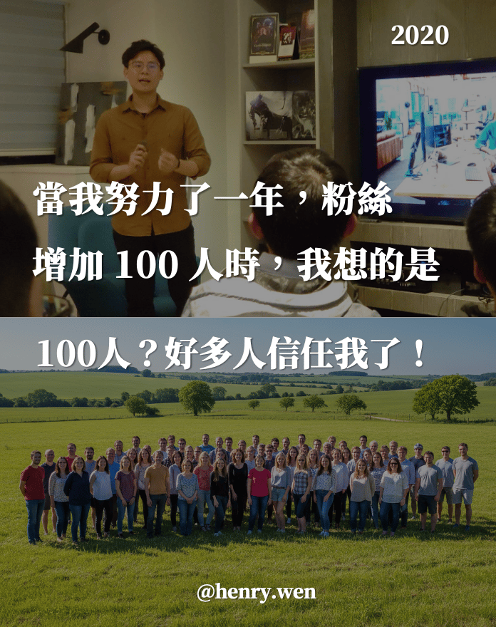 概念很簡單,很多時候我們專注於「數字的不如預期」,例如讚數很少,粉絲數不多,但其實沒有想過,背後這些數字,如果量化成實體的人、實際的場景,是有多大的影響力呀!